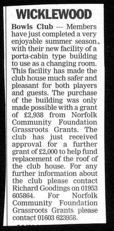 Brief Club History:- The Club was founded in 1973 and the green was laid with the first game played on the 26th June 1973 against Wymondham Over 60's.